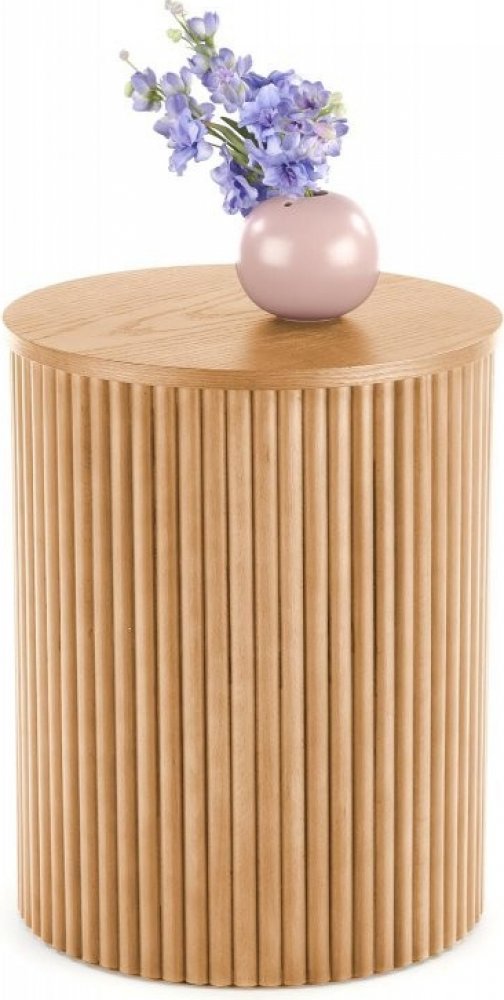 Vysoký konferenční stolek WOODY II osloví milovníky praktických a vysoce estetických řešení. Stůl s kulatým tvarem horní desky je vyroben z masivního dřeva a MDF desky v kombinaci s přírodní dýhou. Dekor přírodního dřeva s viditelnou kresbou vnese do interiéru útulnou atmosféru pro pohodlný odpočinek. Díky dřevěným prvkům získá moderně zařízená místnost stylový design. Model Woody bude skvělý v boho aranžmá - bude to místo, kam si můžete dát šálek kávy nebo vystavit dekorace. Zaujme hlavně dekorativním ornamentem viditelným po stranách konstrukce.