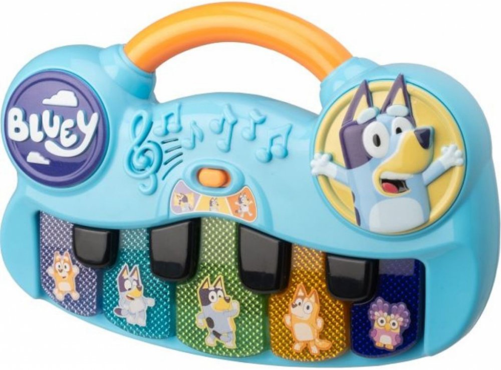 Pianko Bluey je ideálním prvním nástrojem pro každého malého hudebníka! Po zapnutí přehraje známou melodii ze seriálu, což děti nejen potěší, ale také je naučí nové rytmy. Pianko nabízí dvě zábavné možnosti přehrávání: režim klavíru a režim, který přehraje veselé fráze postav ze seriálu. Tento hudební nástroj pomáhá rozvíjet rytmus, koordinaci ruka-oko a motorické dovednosti. Pianko vyžaduje 3 x AA baterie, které jsou součástí balení. Vhodné pro děti od 18 měsíců. Skvělý dárek pro malé hudebníky a fanoušky Bluey!