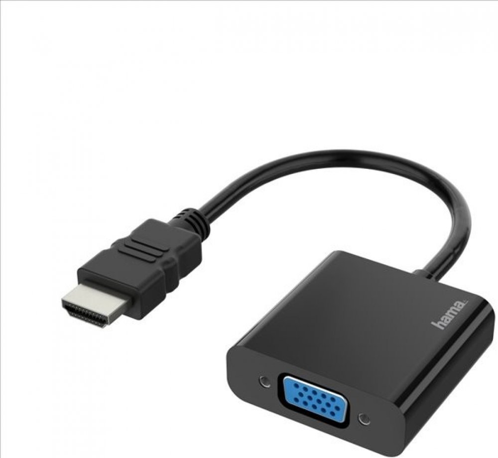 konvertor HDMI výstupu na VGA (video) + jack (audio), vhodné pro připojení počítače/tabletu/přehrávače s HDMI výstupem k TV/monitoru s VGA vstupem (nefunguje opačným směrem)- Future in Connection: nová řada kabelů Hama