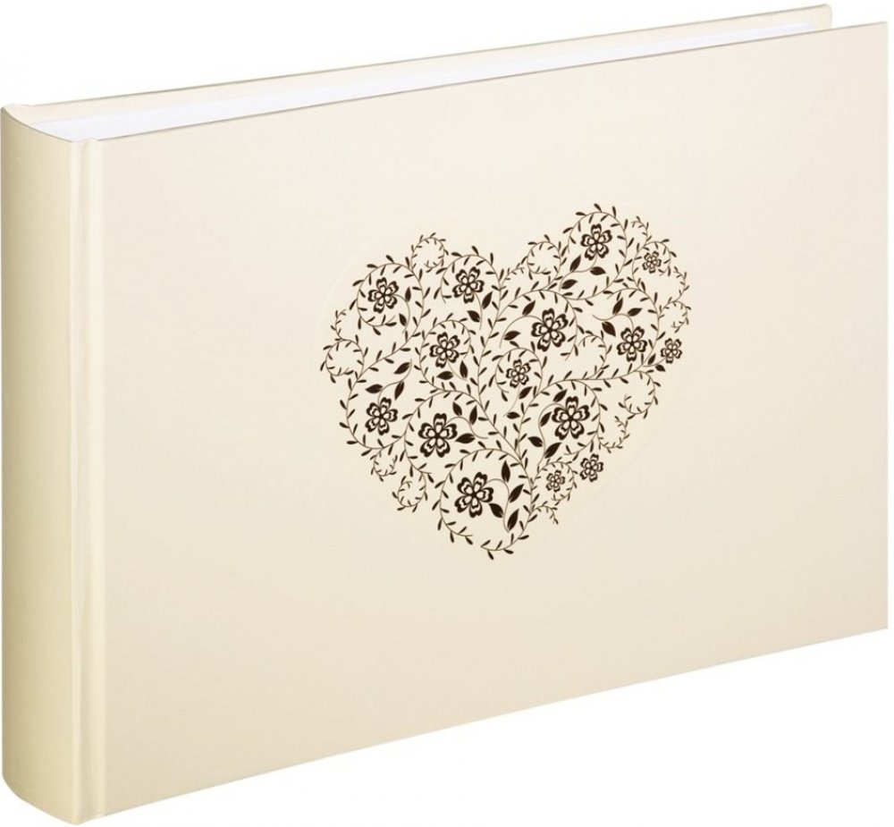- album a zároveň kniha hostů v jednom, se spoustou místa pro lepení fotografií, blahopřání, pozdravy, anekdoty … - tvrdé desky z texturovaného papíru s romantickým motivem srdce zvýrazněným lesklým povrchem - vnitřní strana desek ilustrovaná - pro 120 fotografií formátu 10x15 cm - bílé vnitřní listy z extra silného foto kartonu - formát alba: 30x20 cm - barva: krémová - 60 stran - balení 12 ks