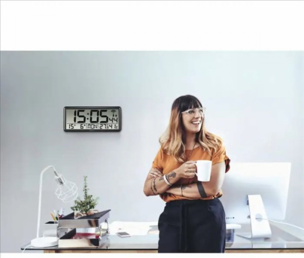 Radiobudík s velmi velkým digitálním displejem času, teploty, vlhkosti a kalendáře, ideální pro použití doma nebo v kanceláři.Zobrazení hodin, minut a sekund pro přesné měření času.Možnost montáže na zeď pro pohodlné umístění.Indikátor kapacity baterie pro snadné sledování stavu nabití.Automatická změna času z zimního na letní bez nutnosti ručního nastavování.Funkce hodin a kalendáře:Možnost přepínání času mezi 12 a 24hodinovým formátem.Zobrazení kalendáře zahrnujícího den, měsíc a den v týdnu ve 7 jazycích (angličtina, němčina, francouzština, italština, španělština, holandština, dánština).Termometr:Rozsah měření teploty v místnosti: 0°C - 50°C.Možnost přepínání mezi stupni Celsia a Fahrenheita pro zvýšení uživatelského komfortu.Hygrometr:Rozsah měření vlhkosti v místnosti: 20% - 95%.