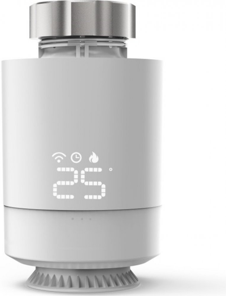 - termostatická regulační hlavice pro radiátor s nastavitelnými vytápěcími programy pro časovou regulaci teploty v místnosti s možností vzdáleného ovládání mobilní aplikací (přes centrální jednotku)