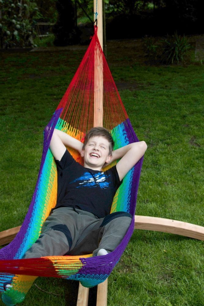 Tato houpací síť je vyrobena z barvené příze, kterou ženy trpělivě tkají do duhové barvy. Patentované vazby jsou technicky navrženy pro extrémní pohodlí. Výroba každé z těchto houpacích sítí trvá zhruba 12 hodin, protože vplétání jednotlivých pramenů je velice složité.. Síť je perfektně vzdušná a nabízí i v horkých dnech příjemné ochlazení díky proudícímu vzduchu okolo celého vašeho těla. Houpací síť je vyrobena z nylonových strun, které poskytují extrémní pohodlí a hlavně odolnost či jinak řečeno dlouhou životnost. Dodává se s taškou z přírodní látky.