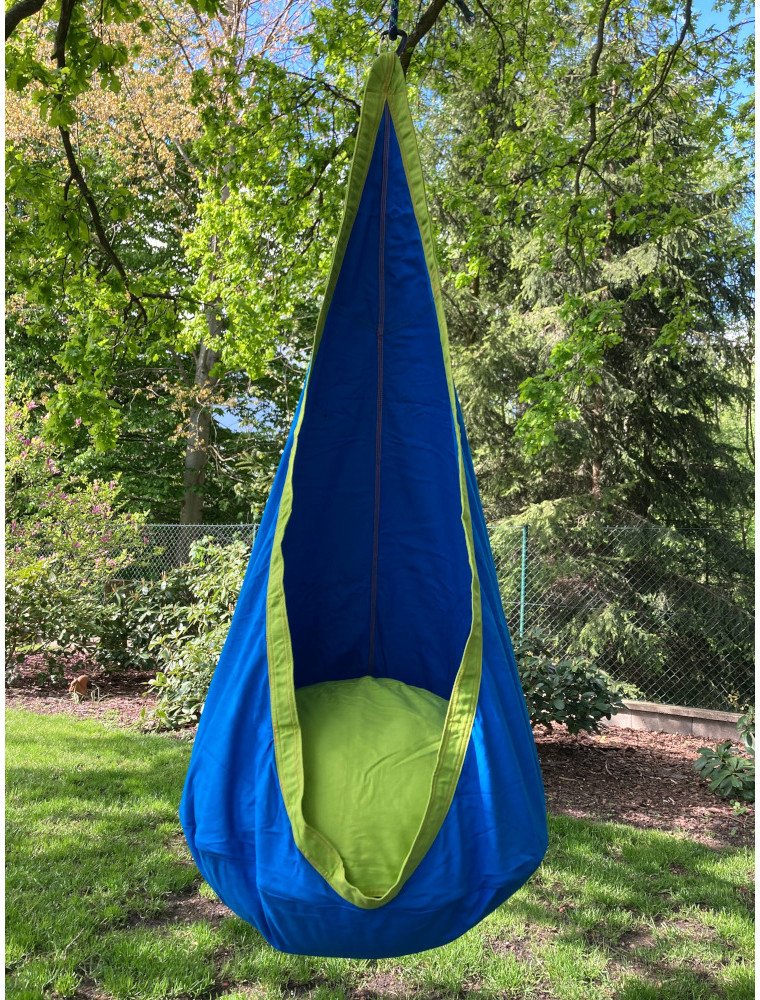 Príma soukromí pro děti na zahradě nebo v pokoji. Sezení vyplněno měkkým polštářkem. Překvapivě velký kokon, který bez problémů pojme i 12-ti leté děti.