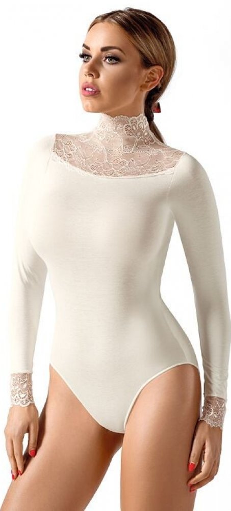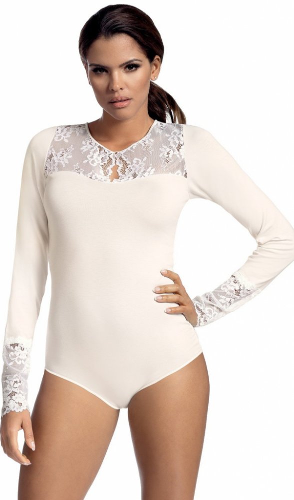Luxusní dámské body s krásnými krajkovými detaily v dekoltu a na rukávech. Body je ušité z přizpůsobivé, jemné viskózy, takže bude velice příjemné k nošení. Má dlouhé rukávy zakončené širokým krajkovým lemem. Výstřih je kulatý. Přední část pokrývá nádherná květinová krajka s malým průhledovým očkem vepředu. Body působí velice vkusně v kombinaci s pouzdrovou sukní nebo černými kalhotami. Zboží je b...