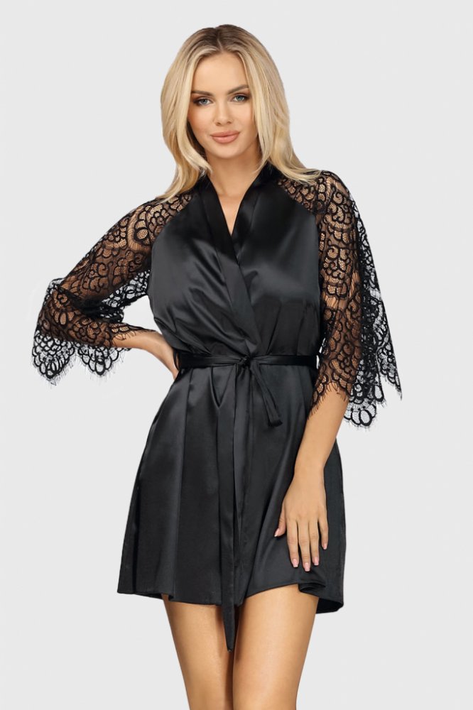 Luxusní saténový župan Ivi černý L/XL Luxusní dámský župan Ivi má nádherné krajkové zdobení a elegantní černou barvu. Župan je vyrobený z krajky a saténu, který je hladký, splývavý a kvalitně zpracovaný. Má krajku v oblasti rukávů a zad, která působí skutečně luxusním dojmem. Rukávy mají 3/4 délku a jsou ozdobně zakončené. Župan je zavinovací a má pásek. Obdržíte jej v krabičce. Oblečení » Pyžama, noční košile a župany » Župany » Luxusní saténový župan Ivi černý L/XL