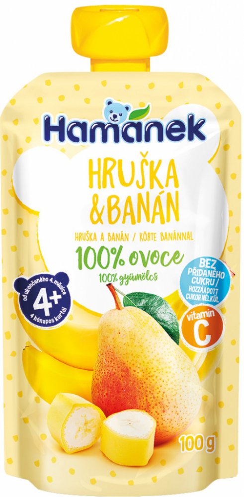 - 100 % ovoce (hrušky 80 %, banány 20 %)
