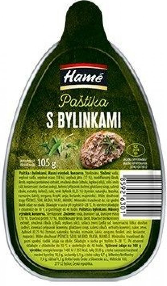 Nová paštika s příjemnou chutí provensálských bylinek a poctivým obsahem vepřových jater a masa.Hlavní suroviny:voda, vepřové sádlo, vepřové maso (18 ), vepřová játra (17 ), modifikovaný škrob, škrob, vepřový proteinový extrakt, smažená cibule (cibule, řepkový olej), solící směs (sůl, konzervant: dusitan sodný), kořenící přípravek (koření, glukózový sirup, sušená cibule, extrakty koření), cukr, sm...