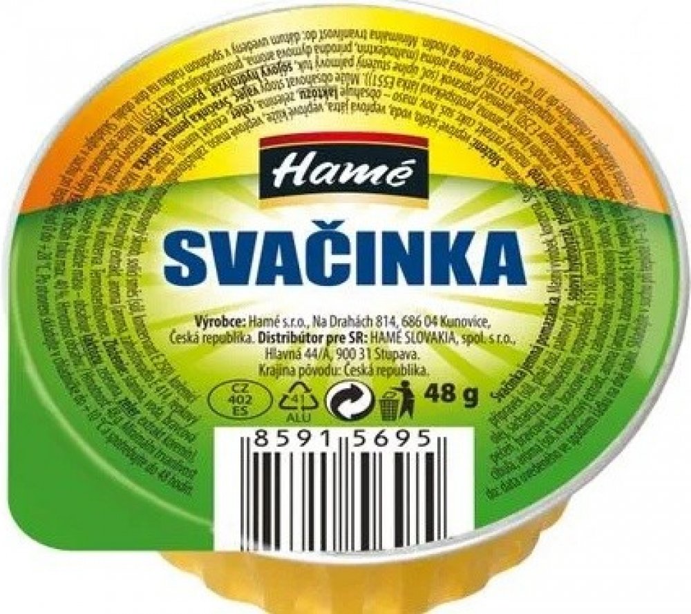 Vepřové sádlo, Voda, Vepřová játra, Vepřové kůže, Vepřové maso, Zahušťovadlo: modifikovaný škrob, Solící směs (sůl, konzervant E 250), Kořenící přípravek (sůl, plně ztuž. palmový tuk, sojový hydrolyzát, pšeničný škrob, masový extrakt, cukr, suš. hov. maso - obsahuje laktózu, zelenina, celer, extrakt koření), Cibule, Aroma (sůl, kvasničný extrakt, aroma (aroma, zahušťovadlo E 414, řepkový olej, sacharóza, maltodextrin, rozpouštědlo E1518), aroma kouřové (maltodextrin, přírodní kouřové aroma, protispékavá látka E551)), Obsah tuku max. 40 %