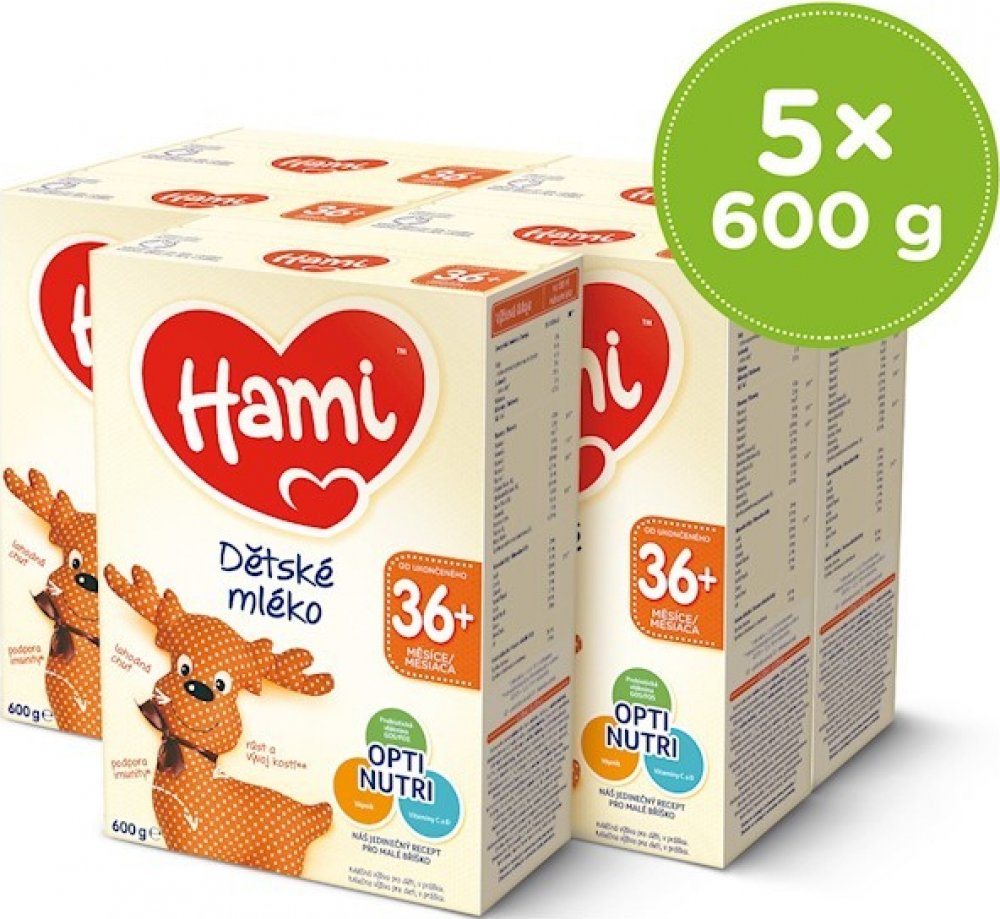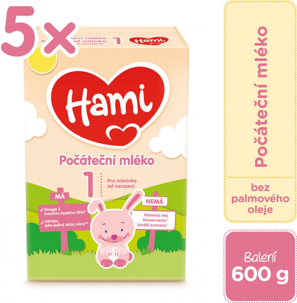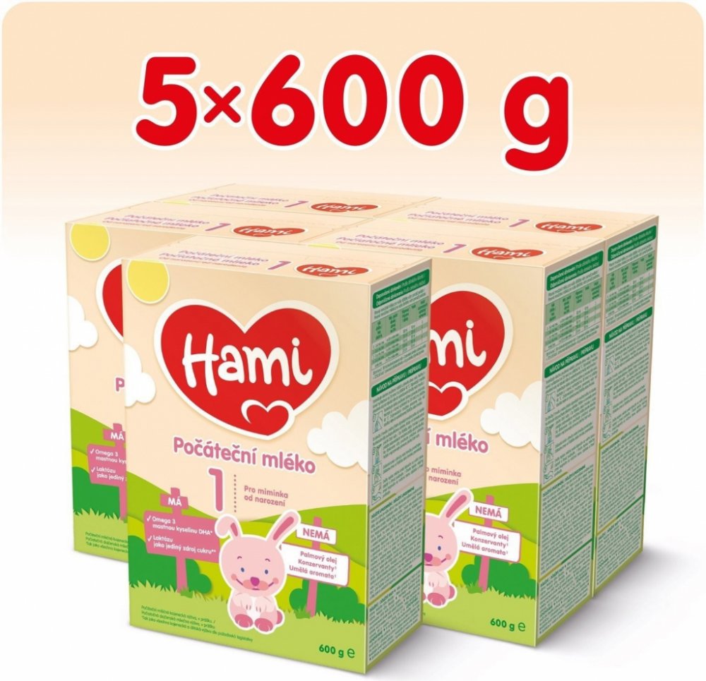 Když se miminko narodí, je to velká radost. Nejlepší výživa, kterou může Vaše miminko dostávat, je mateřské mléko. To je nejlepším zdrojem živin potřebných pro správný růst a vývoj. Pokud ale z nějakého důvodu nemůžete plně kojit, jsou tu pro vás po doporučení pediatra kvalitní kojenecká mléka, např. počáteční mléko Hami 0+. Počáteční kojenecké mléko Hami je určené pro miminka již od narození až do 6 měsíců věku. Mléko obsahuje omega 3 mastnou kyselinu DHA* a pouze laktózu**. *Obsahuje DHA (jak požadují právní předpisy pro veškerou kojenecku výživu). ** Laktóza je jediným zdrojem cukru. Počáteční kojenecké mléko Hami 0+: Vhodné pro děti od narození do 6 měsíců věku Obsahuje DHA* (kyselinu dokosahexaenovou) Obsahuje laktózu, která je jediným zdrojem cukru. *Obsahuje DHA (jak požadují právní předpisy pro veškerou kojenecku výživu). Jak připravit počáteční kojenecké mléko Hami 0+: Umyjte si ruce a vysterilizujte všechno používané nádobí. Převařte pitnou vodu určenou pro kojence. Nechte ji v konvici vychladnout asi 30 minut na přibližně 40 °C. Odpovídající množství převařené vody (viz tabulka na obale) vlijte do vysterilizované láhve. Nepoužívejte opakovaně převařenou vodu. Do láhve s vodou přidejte odpovídající množství prášku (viz tabulka na obale). Na dávkování vždy používejte přiloženou odměrku. Prášek v odměrce nestlačujte, prášek v ní zarovnejte pomocí ploché části nože. Příliš velké odchylky od doporučených dávek mohou mít škodlivé následky. Uzavřete láhev a krátce ji důkladně protřepejte ve svislé poloze, abyste předešli vzniku hrudek. Sejměte víčko a nahraďte jej sterilní savičkou. Ověřte teplotu mléčné směsi kápnutím na vnitřní stranu zápěstí a ihned podávejte. Po každém použití obal pečlivě uzavřete a uchovávejte na suchém a chladném místě (ne v ledničce). Nevkládejte do mléčného prášku vlhkou odměrku. Obsah spotřebujte do 1 měsíce po otevření. Baleno v ochranné atmosféře. Skladujte na suchém a chladném místě (max. do 25 °C, ne v ledničce). Důležité upozornění: Kojení je nejlepší způsob výživy kojenců. Hami 0+ počáteční mléko by mělo být používáno na základě doporučení lékaře nebo osoby kvalifikované v oblasti výživy lidí, farmacie nebo péče o matku a dítě. Výrobek je určený pro výživu kojenců od narození, nemohou-li být kojeni. Je vhodný pro výživu kojenců během prvních měsíců života až do doby zavedení vhodných příkrmů. Pro zdraví kojenců je důležité důsledné dodržování návodu na přípravu i uvedených doporučení. Připravenou stravu spotřebujte do 2 hodin, pak zlikvidujte. Neohřívejte v mikrovlnné troubě, hrozí opaření dítěte. Nikdy nepřidávejte do výživy více odměrek, než je stanoveno, ani cokoliv jiného. Dohlédněte na hygienu ústní dutiny v období růstu prvních zoubků, především před spaním. Potravina pro zvláštní výživu. Způsob použití a další informace naleznete na obalech a webových stránkách www.klubmaminek.cz. Složení: Laktóza (z mléka), rostlinné (palmový, kokosový, řepkový, slunečnicový, slunečnicový s vysokým obsahem kyseliny olejové), sušené odtučněné mléko, demineralizovaná syrovátka (z mléka), galaktooligosacharidy (z mléka), koncentrát syrovátkové bílkoviny (z mléka), syrovátková bílkovina (z mléka), fruktooligosacharidy, fosforečnan vápenatý, rybí olej, chlorid draselný, olej z Mortierella alpina, citronan sodný, cholin chlorid, kyselina L-askorbová, hydrogenfosforečnan hořečnatý, emulgátor (sójový lecitin), inositol, taurin, citronan draselný, chlorid hořečnatý, síran železnatý, L-karnitin, síran zinečnatý, sodná sůl uridin 5‘-monofosfátu, cytidin 5‘-monofosfát, DL-α-tokoferyl acetát, adenosin 5‘-monofosfát, D-pantothenát vápenatý, sodná sůl inosin 5‘-monofosfátu, nikotinamid, sodná sůl guanosin 5‘-monofosfátu, síran měďnatý, DL-α-tokoferol, retinylpalmitát, riboflavin, thiamin hydrochlorid, pyridoxin hydrochlorid, jodid draselný, kyselina pteroylmonoglutamová (kyselina listová), seleničitan sodný, síran manganatý, fytomenadion, cholekalciferol, D-biotin, kyanokobalamin. Složení se vztahuje k sušenému stavu potraviny.