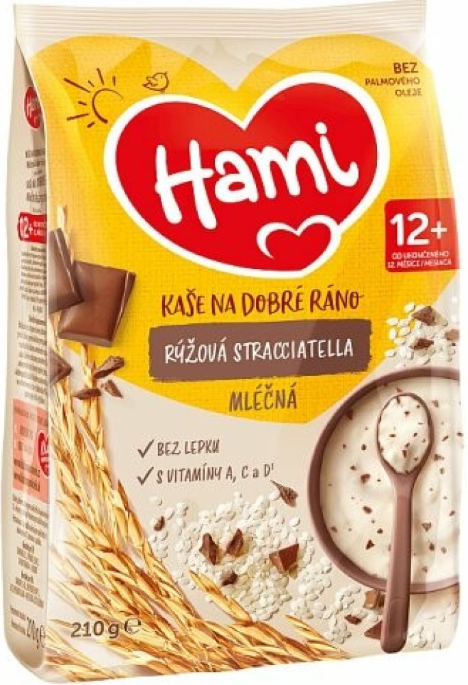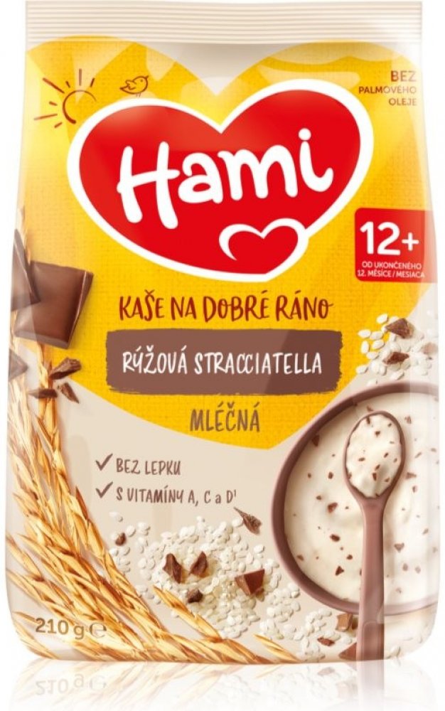 Víme, že výživa dítěte v prvních 1000 dnech života hraje klíčovou roli pro jeho zdraví v dospělosti, a proto s Hami můžete mít jistotu, že Vaše děťátko dostává tu správnou výživu. Hami mléčná kaše rýžová stracciatella je vhodná jako chutná večeře nebo snídaně pro malá bříška. Obsahuje obilniny (rýži), které jsou přirozeným zdrojem energie pro každý den plný zážitků. Jedna porce kaše denně tak pomáhá postupně zavádět nové chutě obilnin či ovoce do jídelníčku děťátka.