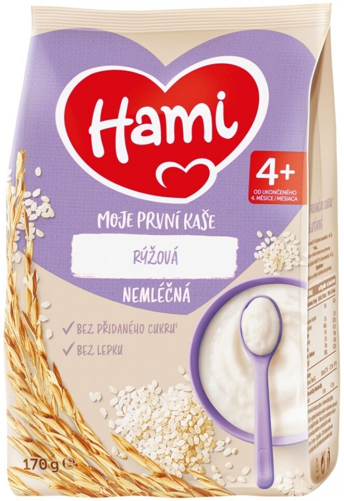 konzistenci, jako jsou Moje první kaše od Hami nemléčné. Přidává se do