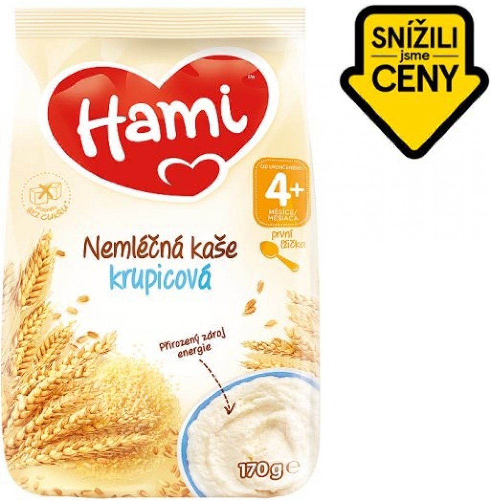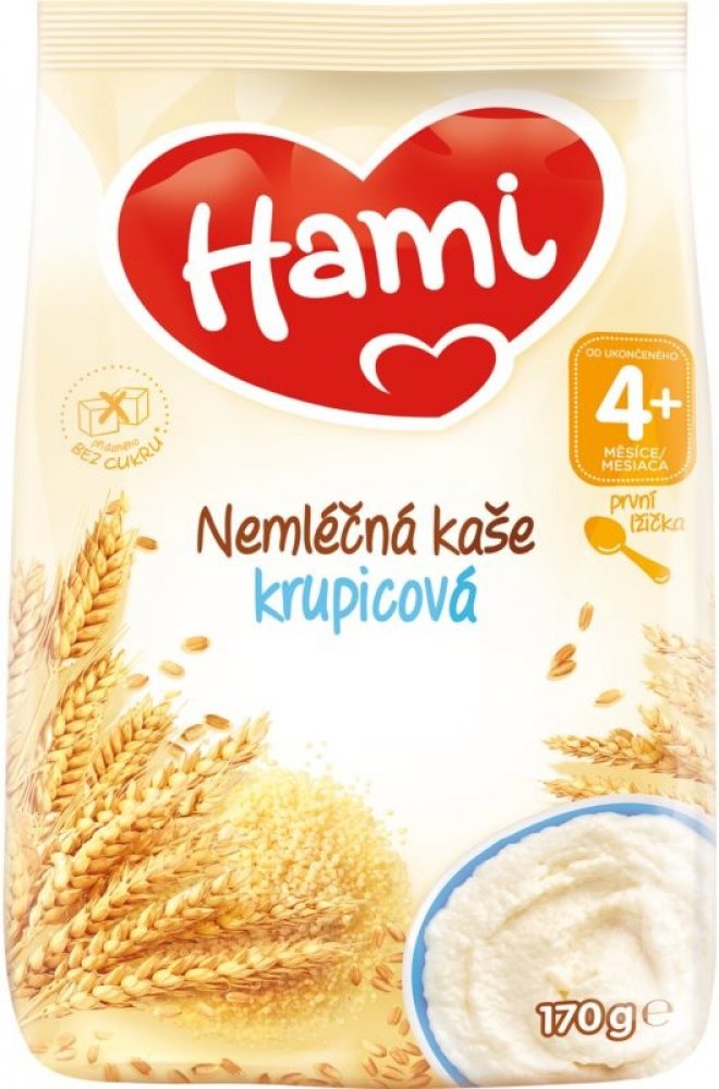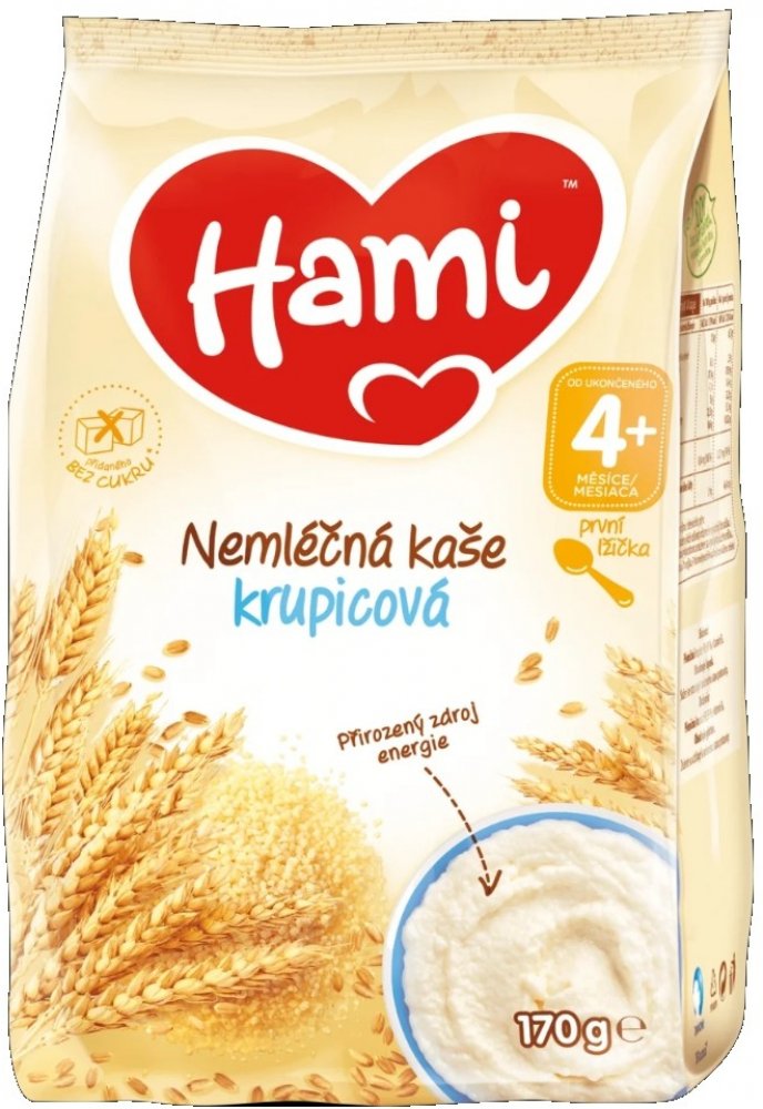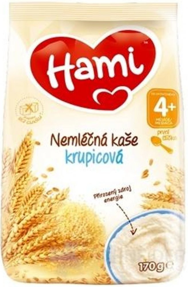 Hami nemléčná kaše krupicová je obilný příkrm pro kojence a malé děti od ukončeného 4. měsíce věku.