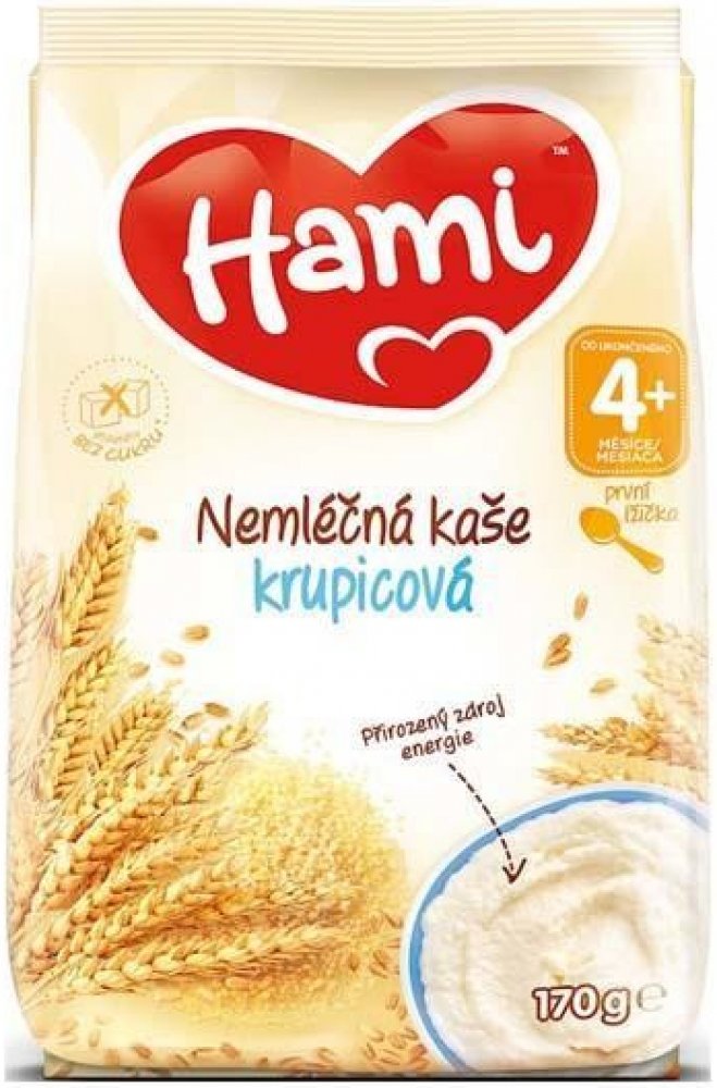 Hami nemléčná kaše krupicová je obilný příkrm určený pro kojence a malé děti od ukončeného 4. měsíce vždy dle doporučení pediatra.