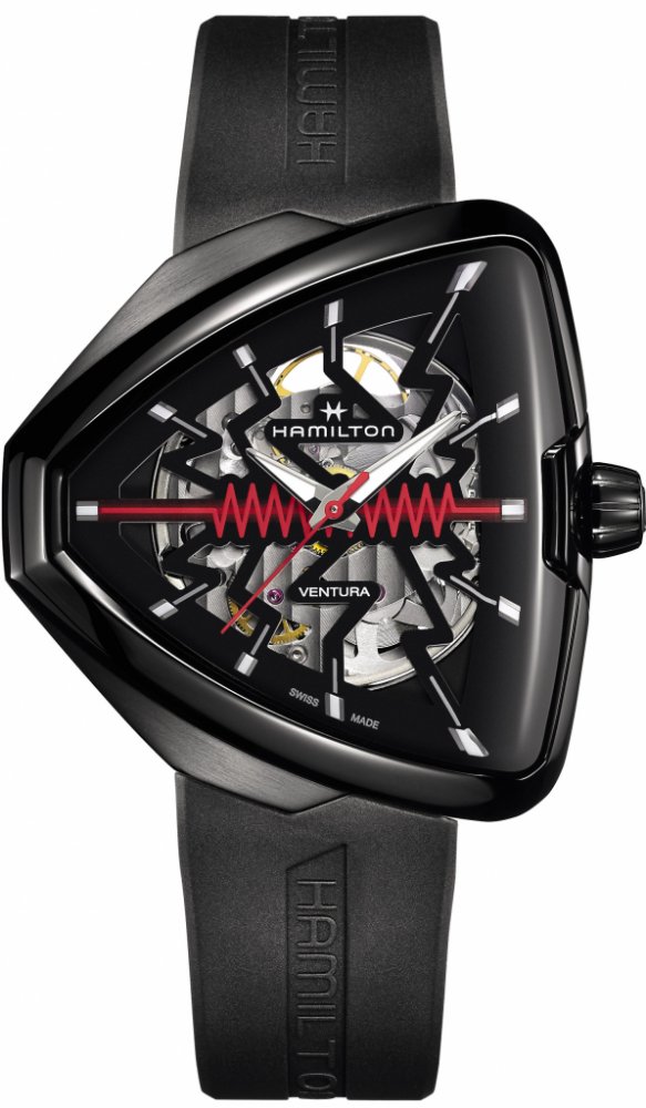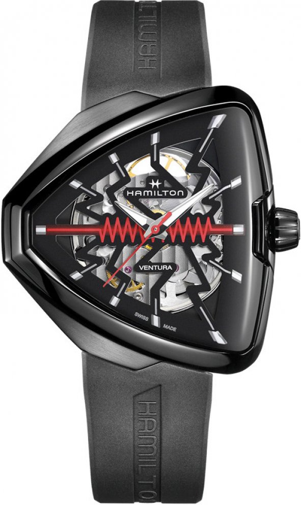Odvažte se být odvážní s Ventura Elvis80 Skeleton, ultramoderní poctou minulosti, současnosti a budoucnosti prvních elektrických hodinek na světě. Výkonná evoluce revolučních hodinek, jejich přesný skeletonizovaný ciferník se vyznačuje nápadným červeným klikatým středem elegantního, černého trojúhelníkového pouzdra s PVD povlakem. Tento výboj energie oslavuje ikonický symbol inovace a přitahuje po...