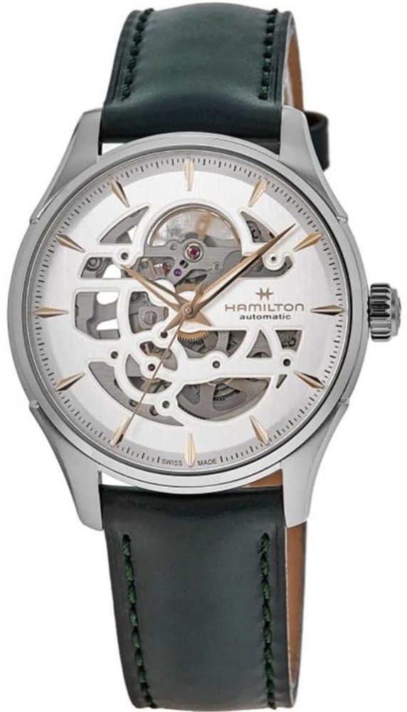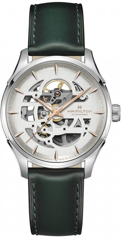 Hamilton Jazzmaster Skeleton Kožený řemínek Bílý ciferník Automatic H42535810 pánské hodinky Pozvedněte svůj styl s Hamilton Jazzmaster Skeleton H42535810, podmanivými pánskými hodinkami, které kombinují umění a přesnost.. Tyto automatické hodinky s eleg