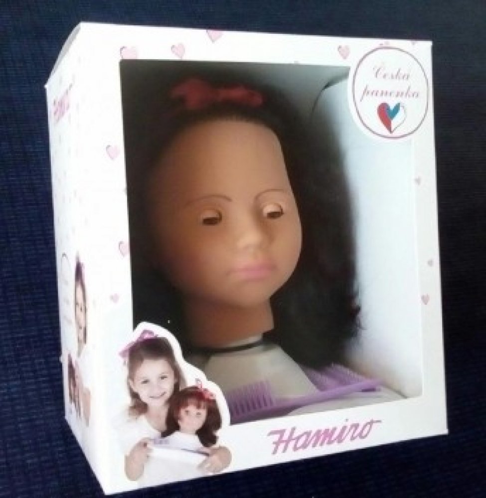Česací hlava je zhotovena z pevné plastické hmoty. Její mrkací oči jsou v poloze ležící zavřeny a v poloze stojící otevřeny. Vlasy jsou vyrobeny z jemných polyamidových vláken a jsou určeny k česání a vytváření různých účesů.