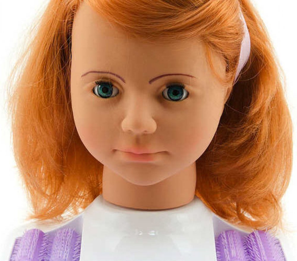 Každá malá parádnice si zajisté ráda vyzkouší práci kadeřnice. Na této modelce s hustými zrzavými vlásky si může kdykoli vyzkoušet všechny své kreativní nápady na účesy.