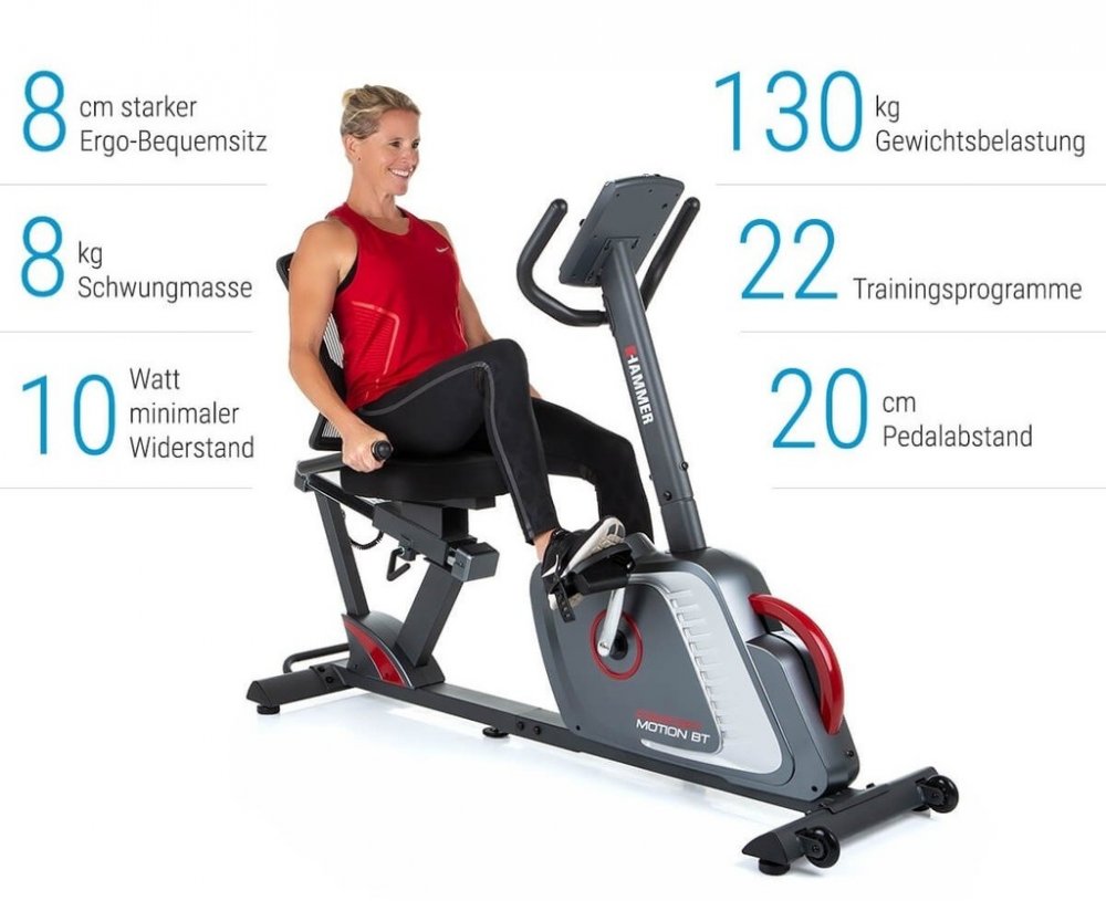 Hammer Comfort Motion BT je rotoped vhodný do domácího prostředí především pro uživatele se sníženou hybností nebo pro rehabilitaci. Tento trenažér vám pomáhá posílit kardiovaskulární systém, zlepšuje váš stav, buduje svaly a zvyšuje spalování tuků. Díky opěradlu je trenažér šetrný k vašim zádům.