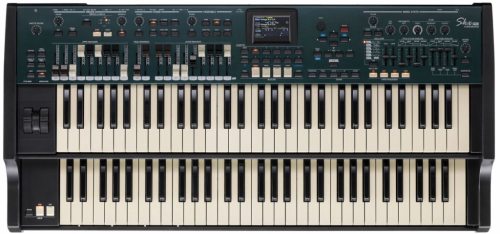 Dvoumanuálové varhany, 2x 61 waterfall kláves, 4 zvukové generátory (varhany, piano, ensemble, mono syntezátor), 100 továrních + 100 uživatelských kombinací, 10 tlačítek pro rychlou volbu oblíbených kombinací, pitch bend a modulace, barevný displej 320x240 pixelů, MIDI IN/OUT, 11-pin konektor pro Leslie reprobox, vstup Aux, rozměry 1002 x 474 x 183 mm, hmotnost 18 kg, za příplatek dřevěné bočnice ...