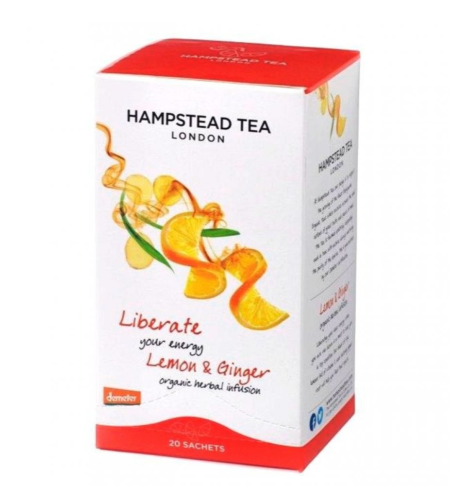 BIO bylinný čaj HAMPSTEAD - citrón a zázvor sáčkový 20x 1,5 g. Bylinná čajová směs delikátního zázvoru a citrusů vám prohřeje tělo a povzbudí vaše smysly. Zázvor jako přírodní stimulátor a lék proti nadýmání se využívá již více jak 500 let v ájurvédské medicíně.