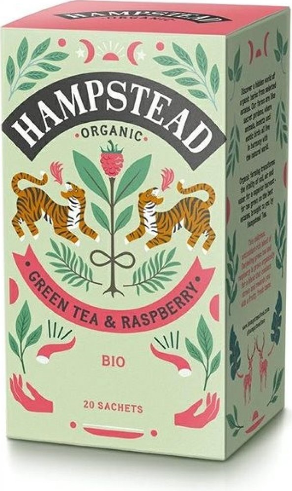 Hampstead Tea BIO Zelený čaj s malinami20× 1,5 g Osvěžující zelený čaj s malinamiZelený čaj s malinami v BIO kvalitě přináší osvěžující chuť a jemně ovocnou vůni, která potěší smysly i povzbudí tělo. Čajové lístky z oblasti Makaibari v indickém Darjeelingu jsou nefermentované a bohaté na antioxidanty, čímž podporují přirozenou očistu organismu, normální hladinu cholesterolu a mentální soustředění....