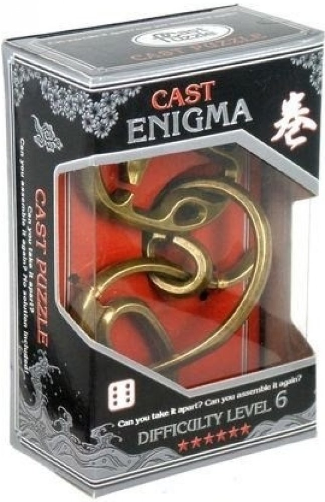Hlavolam Cast Enigma patří mezi skvosty luxusních japonských hlavolamů Hanayama Hlavolam Hanayama Cast Enigma je tvořen třemi prvky zamotanými do sebe. Cílem je všechny tyto části rozpojit. Chce to ale klidnou hlavu, hrubá síla zde nic nezmůže! Cast Enigma patří mezi starší hlavolamy, které zamotaly hlavu již mnoha luštitelům.