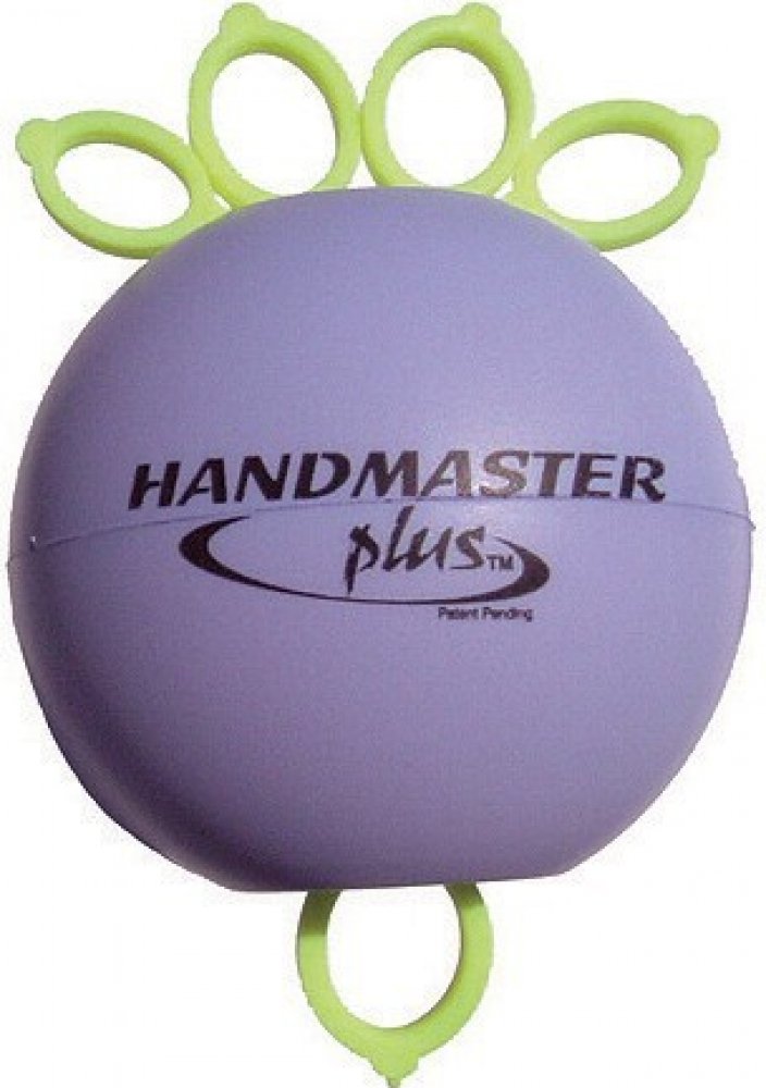 Míček Handmaster Plus s pěti gumovými úchyty na jednotlivé prsty, je na výběr ve třech stupních tuhosti. Handmaster Plus posiluje devět svalů, které svírají dlaň ruky a stejně tak devět svalů, které ruku otevírají. Výsledkem cvičení je maximální stisk a vyváženost krevního oběhu v celé paži.
