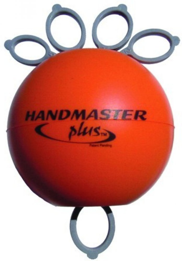 Míček Handmaster Plus s pěti gumovými úchyty na jednotlivé prsty, je na výběr ve třech stupních tuhosti. Prstový posilovač Handmaster Plus posiluje devět svalů, které svírají dlaň ruky a stejně tak devět svalů, které ruku otevírají.