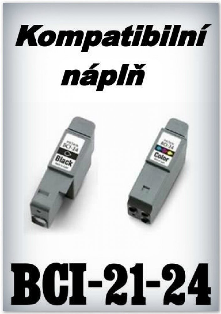 - Kompatibilní náplně Canon BCI-21BK, BCI-21C a BCI-24BK, BCI-24C - Náplně jsou prověřené a spolehlivě fungují - Náplně nezalepují tiskové hlavy - Kapacita: 9 ml a 16,5 ml inkoustu - tj. více než u originálních náplní