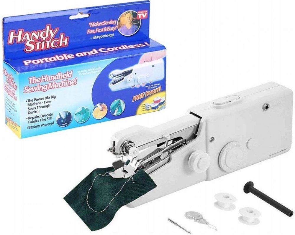 Handy Stitch je ruční šicí stroj, který nabízí výhody velkého šicího stroje a zároveň umožňuje snadné a flexibilní použití díky ručnímu provedení. Kompaktní rozměr a lehkost zajistí maximální pohodlí při práci. Ruční šicí stroj padne perfektně do ruky a je vhodný jak pro začátečníky, tak pro experty. Díky provozu na baterie a velkému výkonu vytvoříte vždy pevný šev a to kdykoliv a kdekoliv.