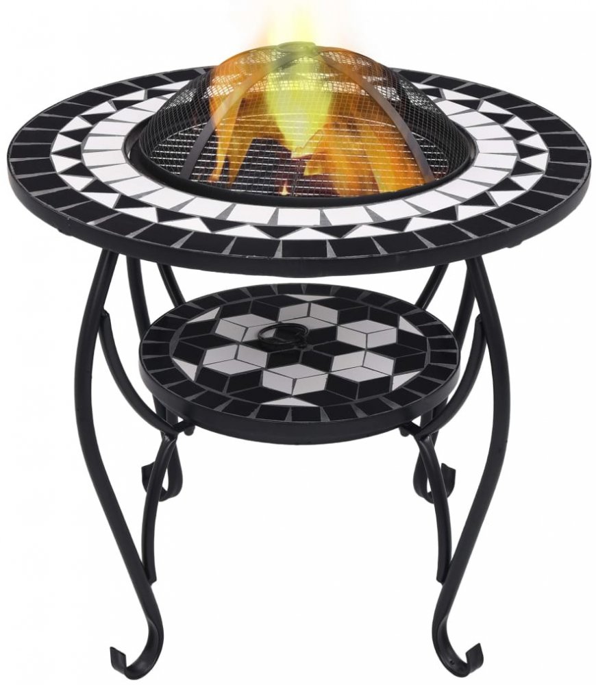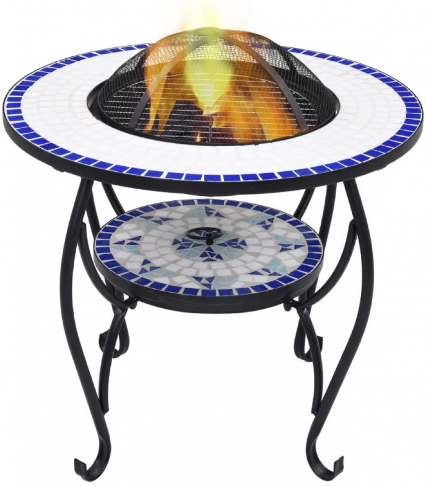 Ohniště je zhotoveno z oceli a výborně pohlcuje a vyzařuje teplo. Můžete v něm spalovat suché dřevo, polínka nebo uhlí. Podpírá ho čtyřnohý stojan. Bezpečnostní síťovaný kryt, který je součástí balení, vám umožní sledovat hořící oheň a zároveň vás ochrání před odletujícími jiskrami a popelem, protože ohniště bezpečně zakrývá. Odstranit ho můžete pohrabáčem, jenž vám rovněž poslouží k přerovnávání hořících polínek či uhlí. Stolek s ohništěm lze navíc také použít jako gril. Jeho kulatý keramický povrch představuje ideální místo k odkládání nápojů a grilovacího příslušenství. Upozorňujeme, že tento výrobek není vhodné ponechávat venku v chladných podmínkách.