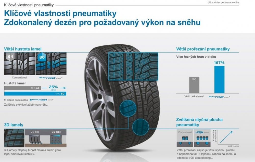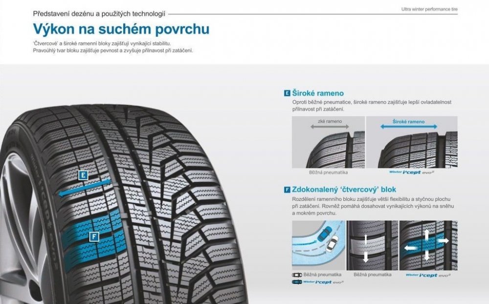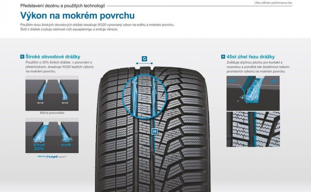 Hankook W320 icept Evo2 je špičková zimní pneumatika navržená pro sportovní a luxusní vozy, která kombinuje vynikající výkon s bezpečností v zimních podmínkách. Díky asymetrickému vzoru běhounu poskytuje vynikající přilnavost a stabilitu na sněhu, ledu i mokré vozovce, zatímco zachovává vynikající ovladatelnost na suchém povrchu. Pokročilá směs pryže zůstává flexibilní i při velmi nízkých teplotách, což zajišťuje lepší trakci a kratší brzdnou dráhu. Pneumatika W320 icept Evo2 je také optimalizována pro snížený valivý odpor, což přispívá k vyšší palivové účinnosti a delší životnosti. Speciální design drážek navíc poskytuje lepší odvod vody a snižuje riziko aquaplaningu, což zvyšuje bezpečnost při jízdě v deštivých podmínkách. Vývoj této vysoce výkonné pneumatiky byl zaměřen speciálně na zimní povětrnostní podmínky evropských silnic. Tato pneumatika je ideální volbou pro řidiče, kteří požadují vysoký výkon a bezpečnost na zimních silnicích bez kompromisů. Hankook Tire je jeden z největších a nejrychleji rostoucích výrobců pneumatik pro osobní automobily, lehké nákladní vozy, 4x4 a SUV, nákladní automobily a autobusy. Hankook Tire vyvíjí špičkové technologie pro zvýšení zákaznické spokojenosti. Hankook dodává pneumatiky do 185 zemí a je celosvětově na sedmém místě v prodeji. Společnost má více než 14 000 zaměstnanců ve čtyřech regionálních centrálách, více než dvaceti zahraničních pobočkách, pěti vývojových centrech a má 70 % příjmů prostřednictvím zahraničních trhů.