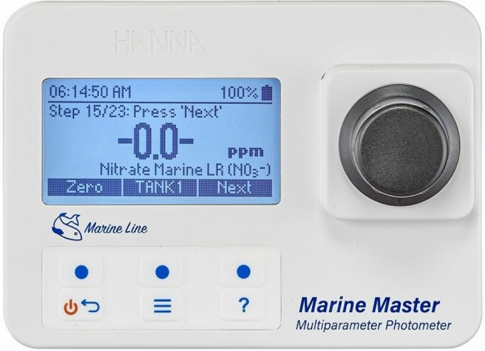 Vodotěsný multiparametrický fotometr Marine Master.Přesně odměříte pH, zásaditost, vápník, dusičnany s nízkým rozsahem a s vysokým rozsahem, ultranízký rozsah dusičnanů a ultranízký rozsah fosfátů pomocí jediného kompaktního multiparametrického testeru! Testování vše v jednom s přesnými výsledky pro útesové nádrže HI97105 Marine Master Photometer je vodotěsný tester, který spojuje přesnost a jednoduchost použití do jednoho jednoduchého, přenosného designu. Jeho pokročilý optický systém laboratorní kvality zajišťuje přesné čtení, zatímco jeho uživatelsky příjemný design a vestavěné návody ho dělají ideálním pro mořské vědce a akvarijní nadšence. Přesný a pokročilý LED optický systém Před měřením není potřeba žádný čas zahřívání Vodotěsný a plovoucí design fotometru - IP67 CAL - zkontrolujte validaci a kalibraci Konsoliduje testovací potřeby do jednoho celku Obsahuje funkce automatického zaznamenávání údajů pro snadné zaznamenávání výsledků testování vody Režim tutoriálu na obrazovce provede uživatele krok za krokem procesem měření Možnost výběru místa měření pro lepší konzistenci sledování Automatické vypnutí Každý Marine Master je dodáván s: Zkušební kyveta (2 ks) Vzorový uzávěr kyvety (2 ks) 1,5V AA alkalické baterie (3 ks) Certifikát kvality přístroje Návod k použití