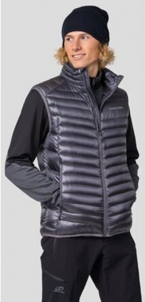 Lehkou péřovou vestu Hannah Adare využijete jako svrchní vrstvu či jako zateplovačku pod membránovou bundu. Technologie komorového plnění obsahuje vysoce kvalitní kachní peří o plnivosti 750 cuin v poměru 80/20 (prachové peří/peří). Prachové kachní peří pochází z certifikovaných farem, zpracovává se v souladu s životním prostředím a splňuje tak standardy označení "bluesign". Vesta má svrchní lehký, ale pevný materiál Airlite DMF od japonského výrobce. Tento odolný materiál spolehlivě zabraňuje pronikání péřových vláken vně. Navíc má povrchovou úpravu proti nasákavosti materiálu a tedy i výplně. Technický vyúžený střih dobře sedí na těle, dolní lem zakončený gumou zamezí úniku tepla. Dvoucestný hlavní YKK zip je v horní části zakončený do stojáčku. Vestu lze sbalit do přiloženého transportního obalu. Využití vesty je od alpské turistiky, přes treking až po skitouring.