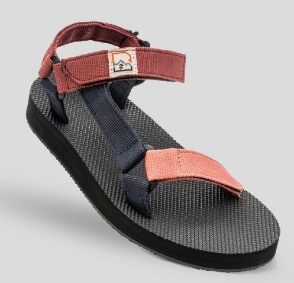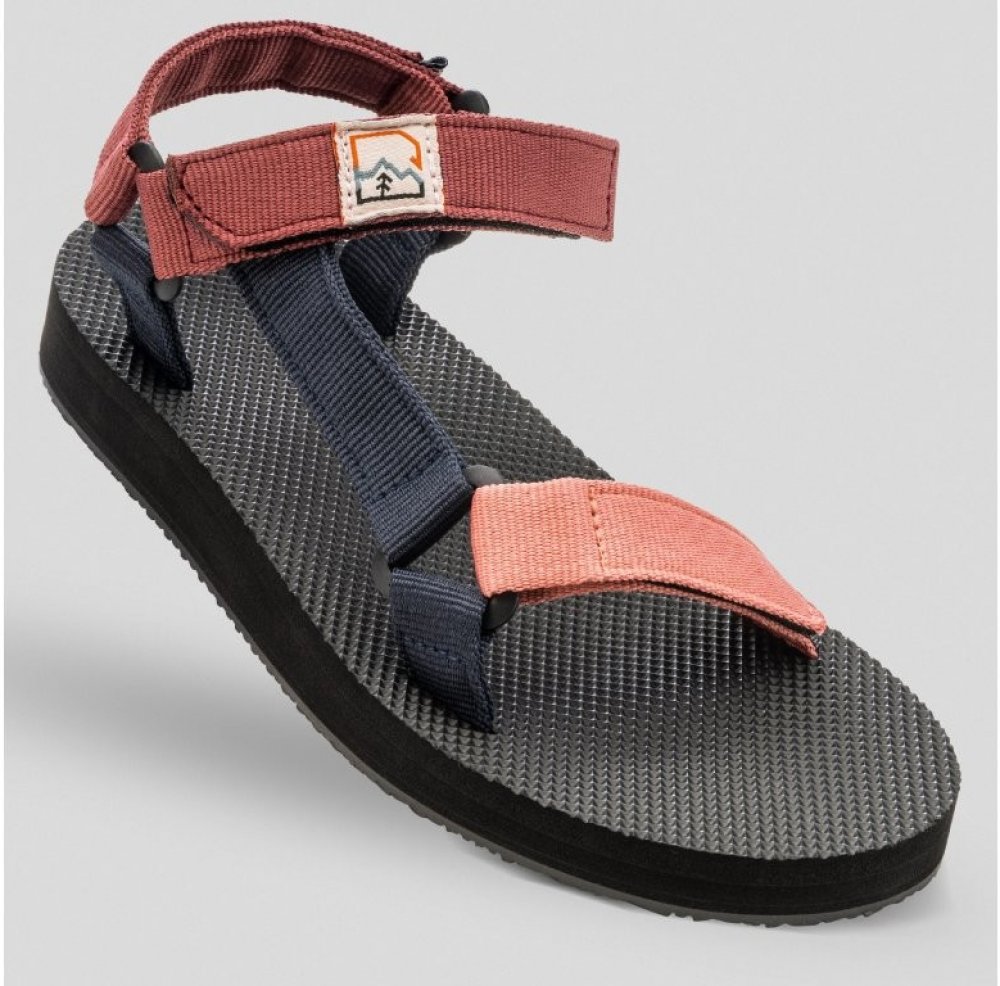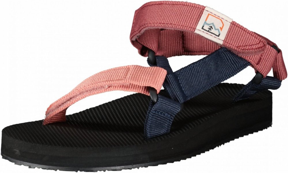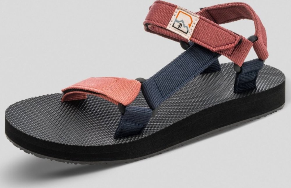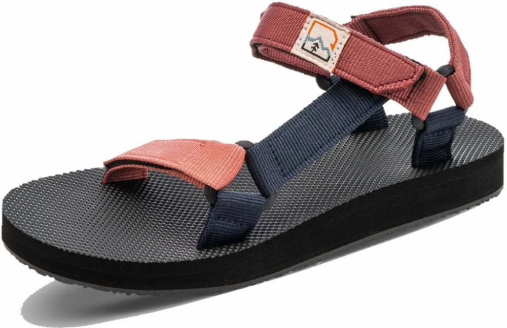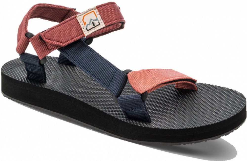 Pohodlné a lehké dámské sandály vhodné i do vody. Otevřená špička, nastavitelné pevné pásky na suchý zip (ve špičce a kolem kotníku, patní nastavit nelze), syntetická podrážka Hannah. Barva pásků - kombinace starorůžových, tmavších vínovo-růžových a tmavě modrých. Univerzální pro letní cestování, pro vodáky, výlety, kemping i lehčí turistiku.