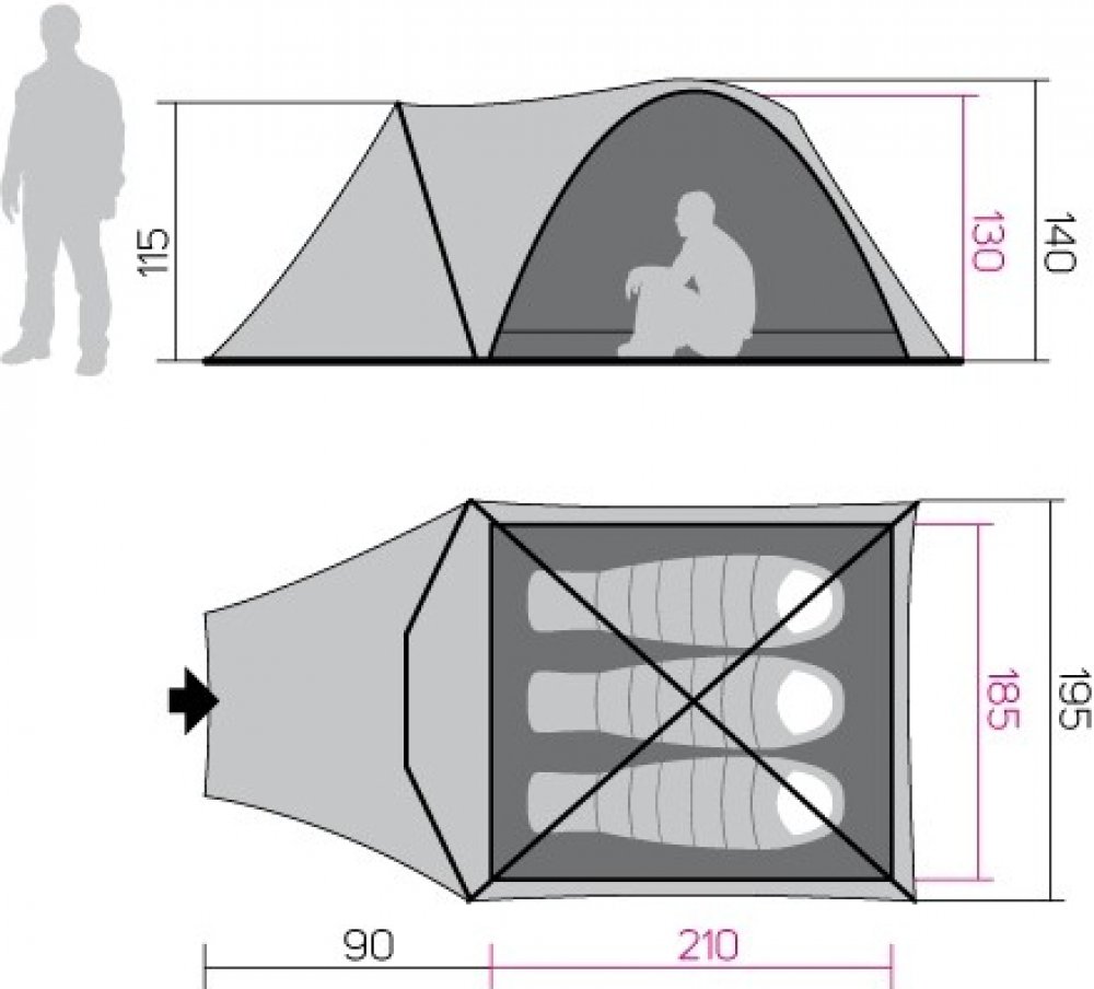 4.2 kg 300 cm 5000 mm 3000 mm 195 cm 140 cm 3 1 Hannah turistické s jednou ložnicí kopulové 3