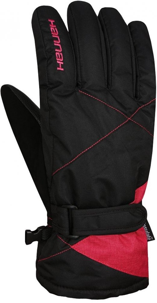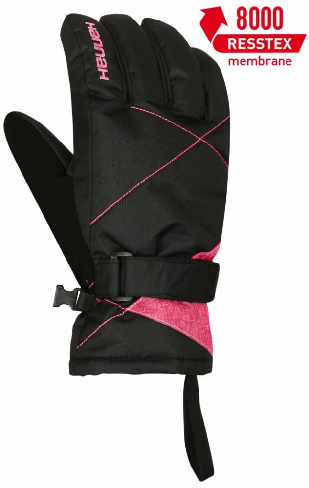 Dámské lyžařské rukavice s membránou Resstex 8000mm a výplní Thinsulate mají zpevněnou dlaňovou část, dále zpevnění gumou v oblasti zápěstí a obvod na zápěsti lze regulovat suchým zipem.