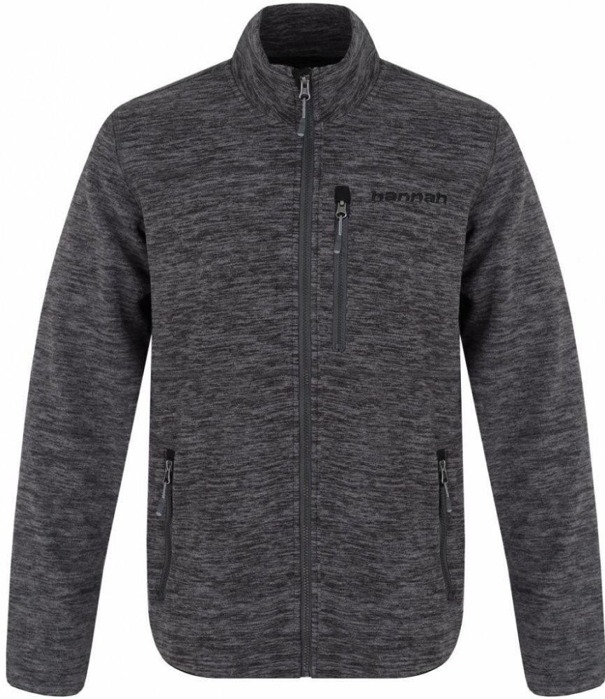 Pánská mikina Hannah Santon II pro cestování i volný čas poskytuje skvělé termoregulační vlastnosti. Mikinu můžete použít jako střední nebo lehkou vnější vrstvu pro teplejší dny. Díky fleecové pletenině s vyčesaným vlasem, materiálu Polarsoft Thermo, má mikina vynikající termoizolační vlastnosti, výbornou hřejivost a minimální nasákavost. Střih regular dobře padne, spodní kraj i rukávy jsou lemované gumou. Mikina je na zip se stojáčkem a má hlavní kapsy na zip na drobnosti plus kapsu na prsou. Efektní vzhled umocňuje dekorativní prošití.