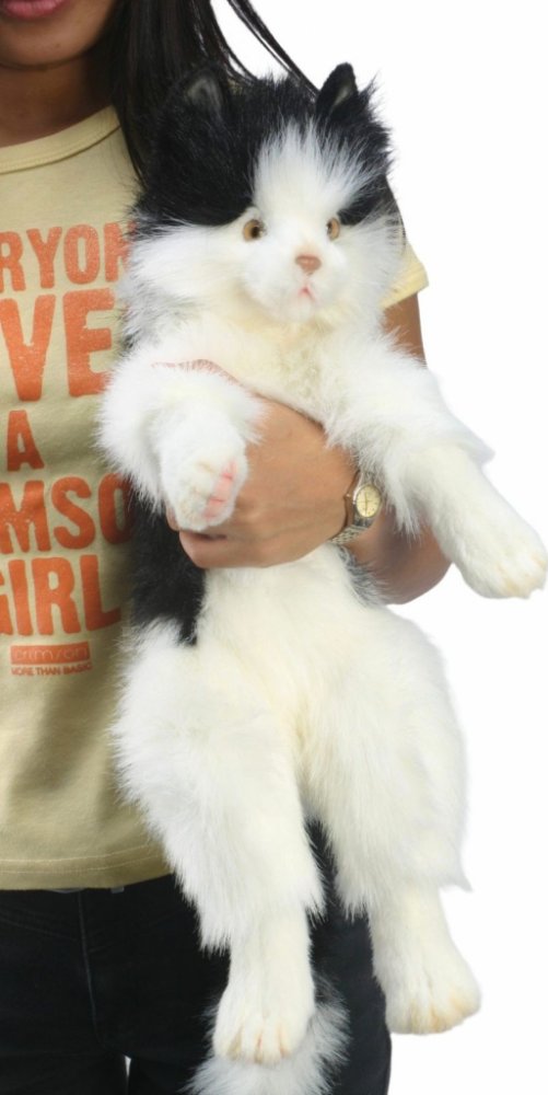Některé kočky milují výšky, jiné si vybírají jen ta nejměkčí místa k ležení. Tahle plyšová krasavice zvládne obojí – a ještě při tom vypadá jako čerstvě probuzená aristokratka. Její nadýchaný černobílý kožíšek, dlouhé nohy a výraz, který se nedá přehlédnout, jí dávají nezaměnitelný charakter. A ačkoli se nenechá jen tak přemluvit ke hře, v náruči se nosí ochotně a s grácií.