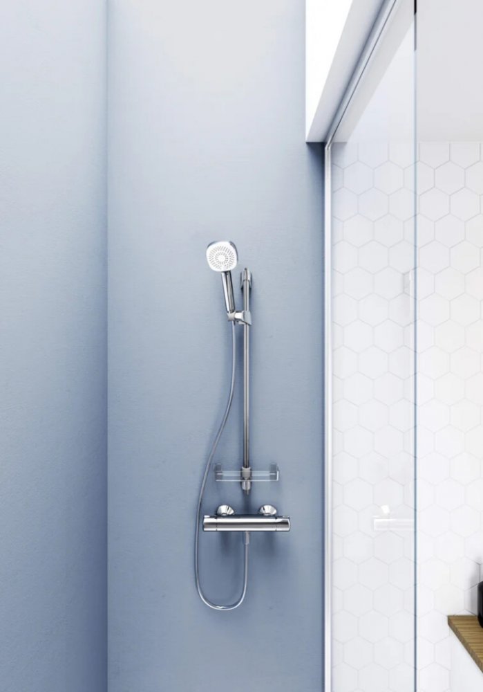 Hansa Micra je termostatická sprchová baterie určená k nástěnné montáži s roztečí 150 mm, vyrobená z odolné mosazi s chromovou povrchovou úpravou. Jedná se o produkt pro případ zaměněného připojení studené/teplé vody. Precizní termostatická kartuše zajišťuje přesnou regulaci a stabilitu teploty vody, zatímco bezpečnostní pojistka nastavená na 38°C chrání před opařením. Díky technologii THERMO COOL...