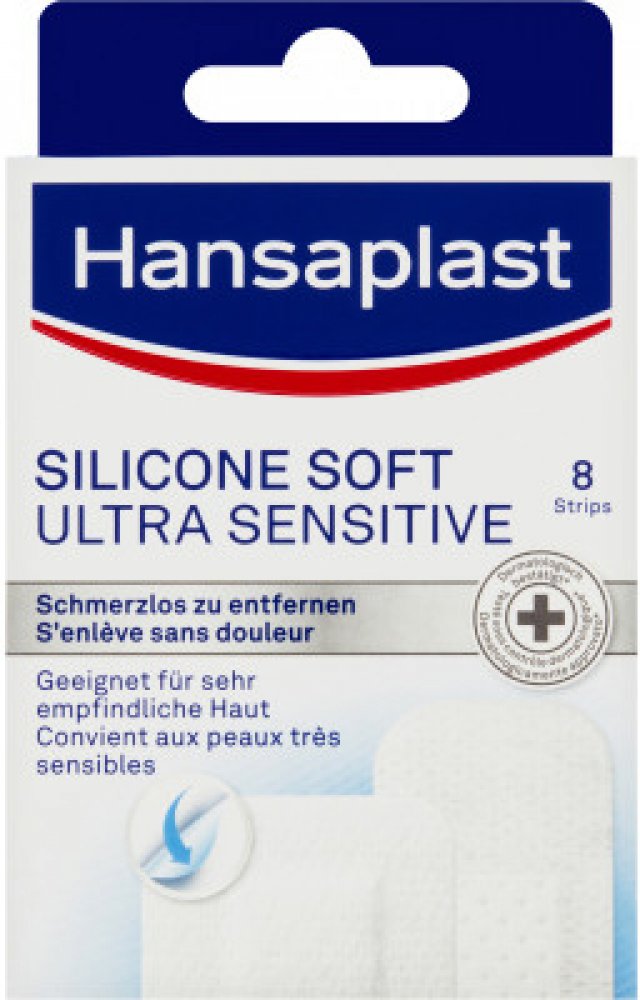 Na překrytí a ochranu drobných ran. Vhodné po menším chirurgickém zákroku. Vlastnosti Hansaplast Silicone Soft Ultra Sensitive náplasti: Bezbolestné odstranění. Dokonalá rovnováha spolehlivé přilnavosti a zcela bezbolestného odstranění. Bezpečně drží i po