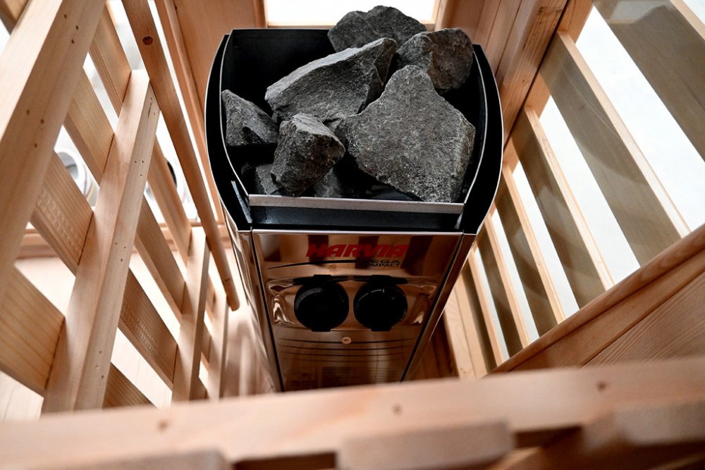 Kamna nejsou součástí sauny, je nutno dokoupit zvlášť. Doporučujeme dokoupit kamna o síle 2,3-3,5 kW.