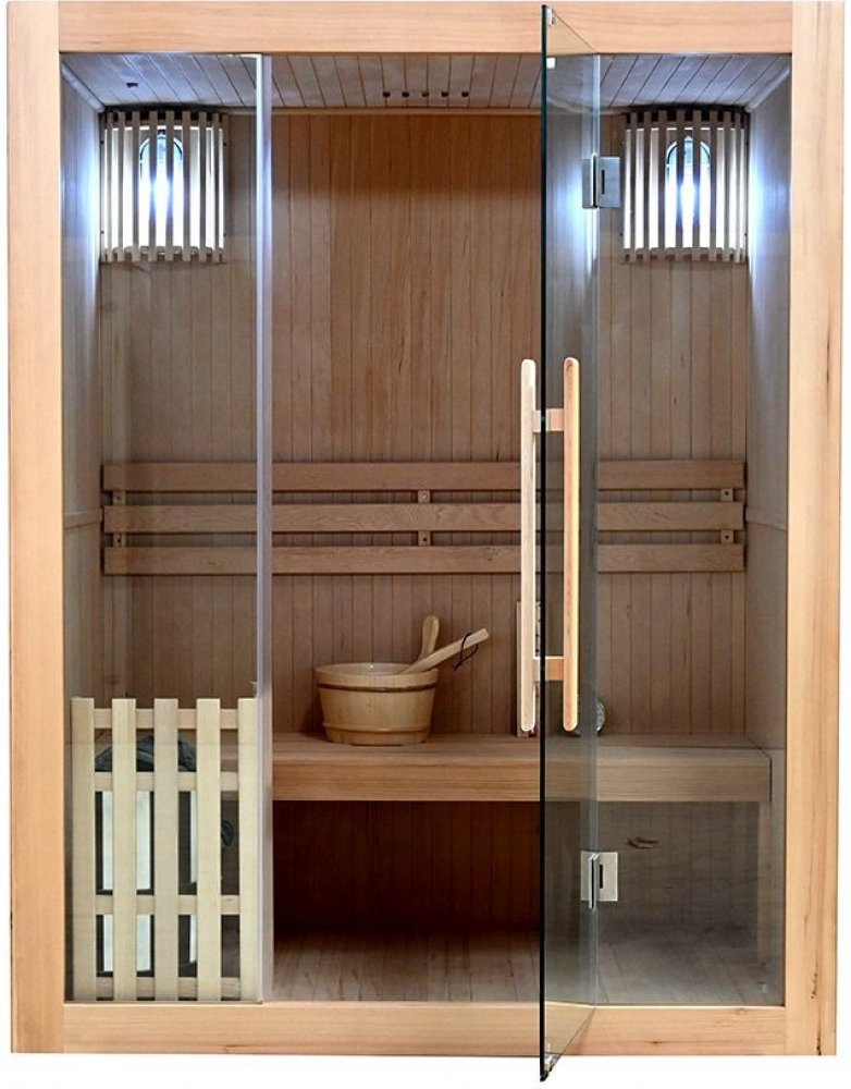 Elegantní domácí tradiční finská sauna Perinne 3 je navržena pro tři osoby a vyrobena z kanadského smrku. Tato sauna se hodí do interiéru rodinného domu i bytu.