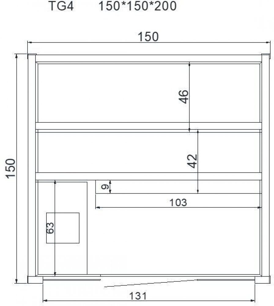výška 200 cm, šířka: 150 cm, hloubka: 150 cm