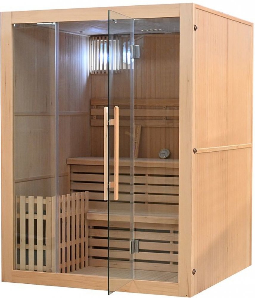 Hanscraft kanadský smrk finské sauny 4 osob 190 kg lávové kameny interiérové přední 2000 mm 1500 mm 1500 mm