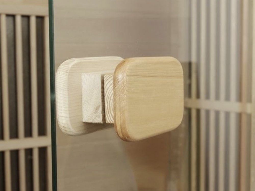 Infrasaunu San Marino jsme navrhli do naší výroby na základě poptávek po extra malé infrasauně, která by se pohodlně vešla do jakéhokoli bytu. Je malá a přesto velmi výkonná. Interiér i exteriér sauny San Marino je vyroben z kvalitního dřeva kanadského jedlovce - hemlocku v kombinaci s čelní MDF deskou s barevným dekorem přírodního dřeva, aby se univerzálně hodila do kterékoli domácnosti nebo do rodinného domku. Saunujte se pohodlně v jednom a užijte si nenáročnost na místo v interiéru. Podstava této sauny měří pouze 90 x 65 cm, což je ideální rozměr do kteréhokoli kouta domácnosti. Dveře s bočním výhledem jsou navrženy pro bezproblémový přehled při saunování.