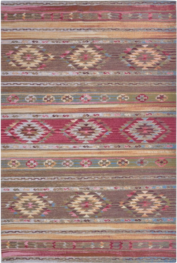 Vícebarevný koberec v ethno stylu zaujme svým originálním vzorem a bohatou paletou barev. Kombinace tradičních motivů a živých odstínů dodává interiéru exotický a energický nádech. Díky svému výraznému designu se stane dominantním prvkem každé místnosti, zatímco protiskluzová úprava zaručuje bezpečné a pohodlné používání.