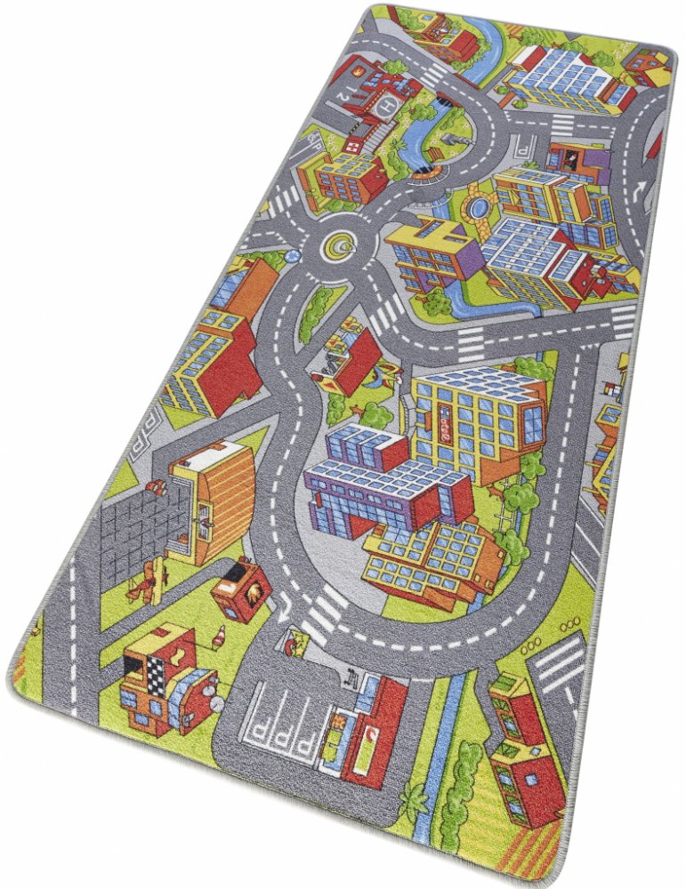Koberec s motivem silnice a křižovatek nadchne nejen kluky.