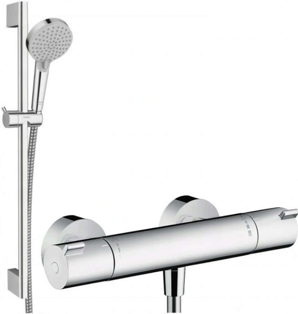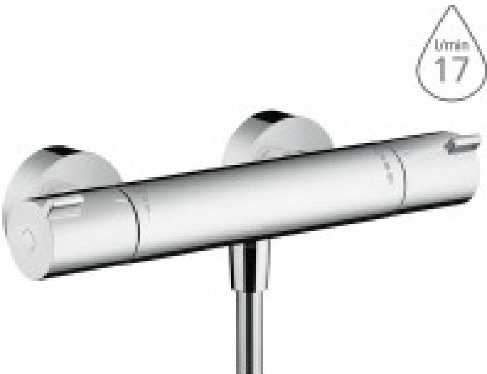 Luxusní sprchovací zážitek je závislý na mnoha faktorech. Většinu z požadavků na kvalitní lázeň zvládne naplnit termostatická sprchová baterie Hansgrohe Ecostat s jedním výstupem, která je určena k instalaci na zeď. Hladké tělo a chromové povrchy tvoří nadčasovou estetickou kombinací, která skvěle zapadne do moderní, ale i klasicky laděné koupelny. Vedle příjemného vzhledu se baterie zaměřuje i na spolehlivost, perfektní funkčnost a bezpečnost. Kovové rukojeti, kterými nastavujete požadovanou teplotu a intenzitu proudu se snadno ovládají i s mokrýma rukama či rukama od mýdla.Součástí rukojeti na regulaci teploty je také bezpečnostní zarážka při 40 °C. Tím se minimalizuje riziko opaření. Omezení teploty můžete nastavit podle vašich preferencí. Výhodou termostatické baterie je také zpětný ventil, zabudovaný filtr nečistot a v neposlední řadě také odhlučnění. Svou koupelí tedy nebudete rušit ostatní členy domácnosti v jiných místnostech. Díky tlačítku Ecostop navíc ušetříte: vodu i peníze. Reguluje totiž spotřebu vody, avšak zachovává perfektní průtok. Dopřejte si tedy péči, kterou si zasloužíte.Termostatická sprchová baterie 1001 CLpro 1 výstuptermostatická kartuše, keramický ventil 180°bezpečnostní pojistka na 40°Cnastavitelné omezení teplotyprůtok připojením pro ruční sprchu při 0,3 MPa: 17 l/ minprovozní tlak: min. 0,1 MPa / max. 1,0 MPatlačítko Ecostop omezuje spotřebu na 10 l/ minzpětný ventils odhlučněnímmateriál: kovové rukojetizabudován filtr nečistotrozteč středů: 150 ± 12 mmrozměr přívodů: DN15